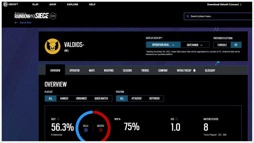 Sometimes you prefer minimal software installations and you want your statistics straight from the source. Ubisoft's official R6 stats tracker pulls data directly from its servers, ensuring accuracy that third-party tools sometimes miss during API disruptions or maintenance periods.