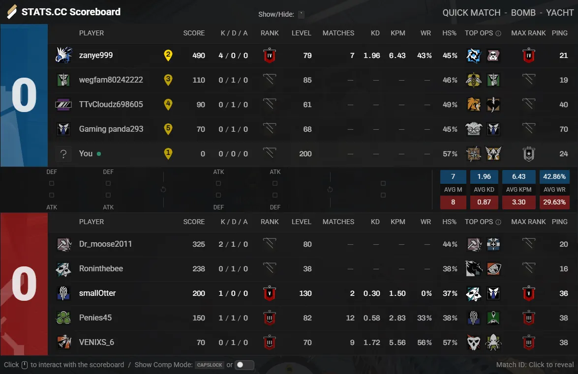The overlay activates the moment you load into a match, displaying detailed information about every player in your lobby. You'll see ranks, win rates, kill/death ratios, headshot accuracy, and even operator preferences for both teammates and opponents. This intelligence lets you adjust your strategy before the first drone phase even begins.