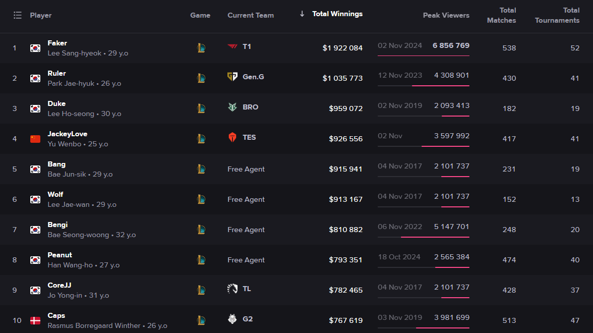 Things are similar even in different areas such as North America, Korea, and China, where top-tier professionals earn $100,000 to $500,000 and more. These are all base salaries, not including any other income such as prize winnings or sponsorship deals.