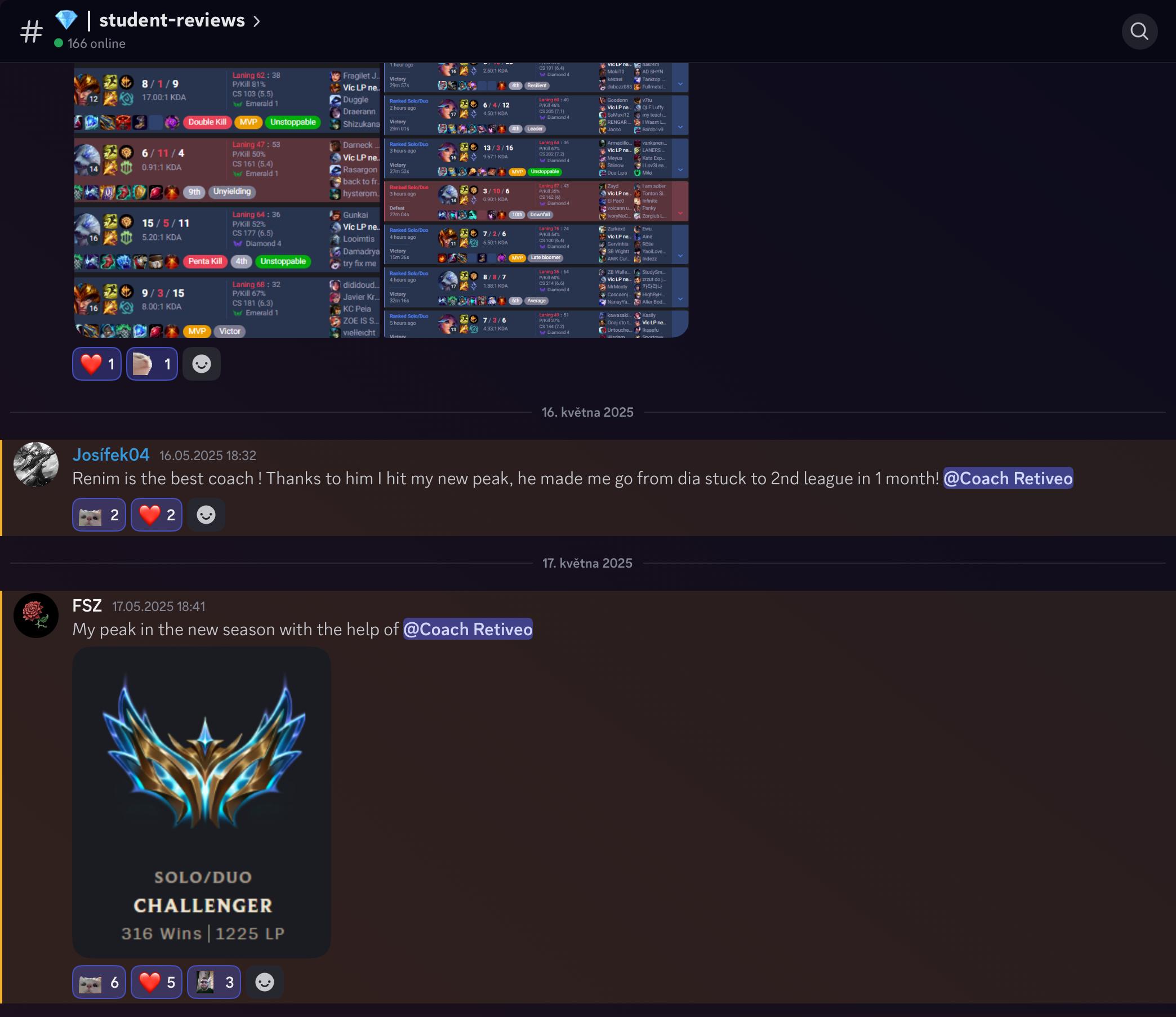 Great coach! Very patient and clear with explanations. He helped me improve both mechanics and decision-making, and always gave constructive feedback. Highly recommended for anyone looking to get better at LoL.
